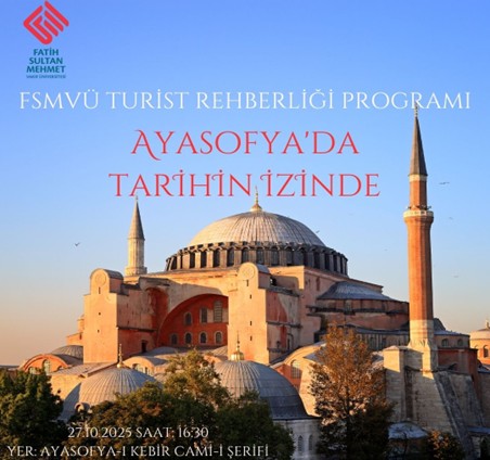 27 Ekim Pazartesi günü Turist Rehberliği Programı olarak geleceğin turist rehberleriyle yapmış olduğumuz ilk etkinliğimiz olan "FSMVÜ TURİST REHBERLİĞİ PROGRAMI; AYASOFYA'DA TARİHİN İZİNDE" adlı etkinliğimizi gerçekleştirdik. Etkinliğimize katılan öğrencilerimize teşekkür ederiz.